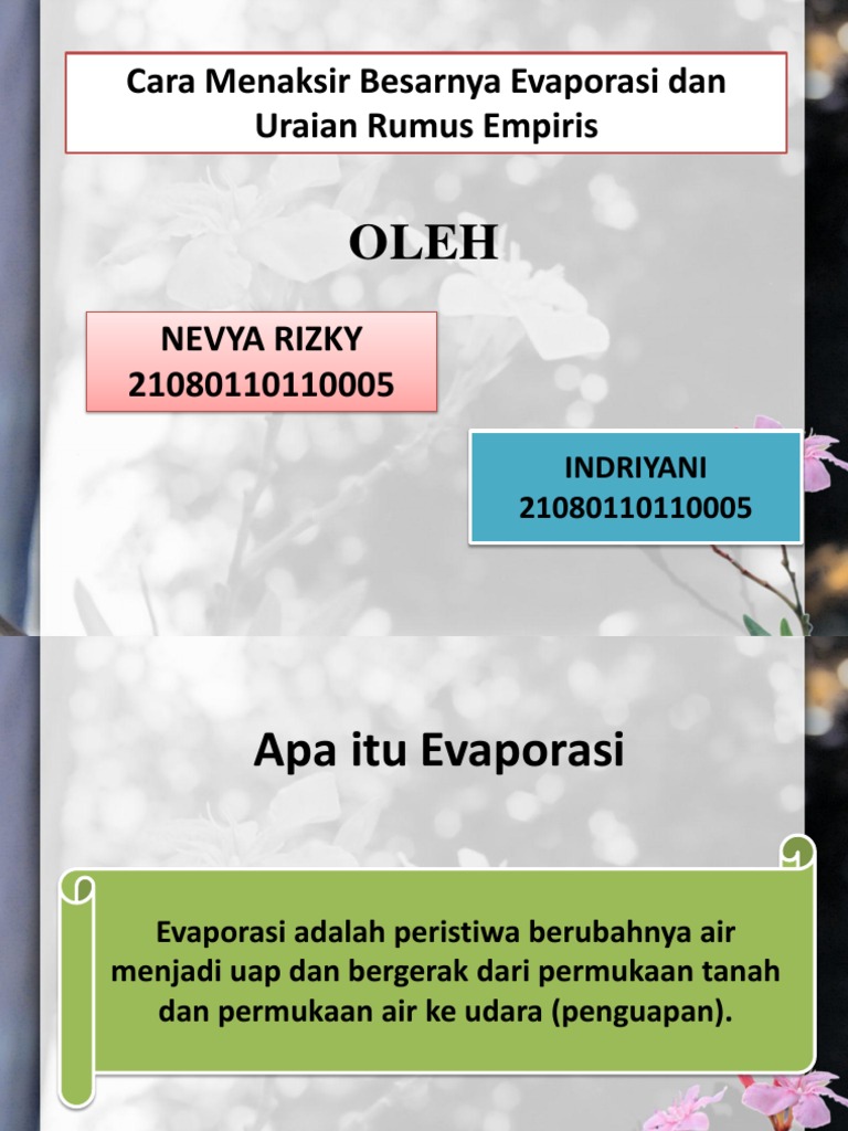 Peningkatan Evaporasi Adalah Archives Ruangbimbel Co Id from ruangbimbel.co.id Evaporasi adalah proses perubahan di dalam benda cair menjadi gas. Evaporasi adalah proses penguapan air oleh panas matahari. Dua contoh evaporasi yang dikenal adalah berkeringat dan siklus hujan. Penguapan tersebut mengubah wujud air menjadi gas. Setelah proses evaporasi atau transpirasi, selanjutnya akan terjadi proses kondensasi. Proses evaporasi adalah proses yang terjadi di permukaan vegetasi yang berhubungan dengan dua macam persamaan yang mendasarinya yaitu neraca air dan neraca energi sebagai berikut Panas (energi) adalah faktor yang diperlukan untuk evaporasi terjadi. Dalam kebanyakan proses evaporasi , pelarutnya adalah air.
